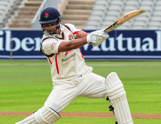 Starting the afternoon session on 154/7, Rashid and Plunkett were able to add 50 runs in 76 balls for the seventh wicket, a partnership that became increasingly frustrating from Lancashire's point of view, after they had taken three wickets for eight runs in the morning session. Another bowling change reaped success for the Red Rose, with Croft taking a good diving catch off Simon Kerrigan to account for Rashid (34) at 204/8, after he and Plunkett had added 74 runs in 23 overs.